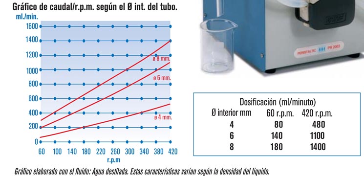 Caudal máximo 1500 ml/minuto. Con dosis continuas en fases de 10 segundos.