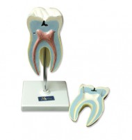 Molar Superior con 3 Raíces Molar Superior con 3 Raíces, en 2 partes, 24x12x12cm., aumentos 6x Molar superior con triple raíz y caries, con sección longitudinal de la corona y la ra...