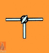 Llave de paso, 2 vías oblícuas. 9mm.Ø x 90mm. long. Paso macho: 4mm.Ø