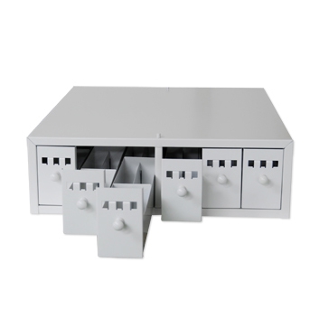 Cada cajón está subdividdo en 6 compartimentos fijos.