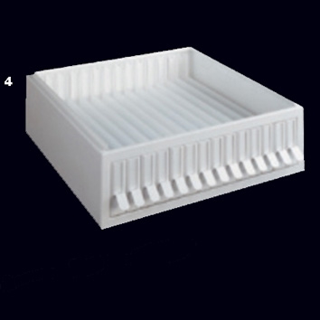 Módulo archivador apilable (4), metálico, para 6.500 portaobjetos, con 14 cajones Con 14 cajones deslizantes, para contener aproximadamente 6.500 portaobjetos de 26 x 76 mm. Cada cajón mide interiormente 27 x 475 mm. Dimensiones: 140 x 480 x 480 mm. Peso: 15 kilos. Referencia: AUDS11 Marca: Deltalab « Volver