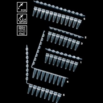 Tiras de 8 tubos de 0,2ml y tiras de 8 tapones planos.