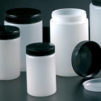 Tarros cilíndricos fabricados en polietileno de alta densidad, con tapa estriada a rosca y obturador.