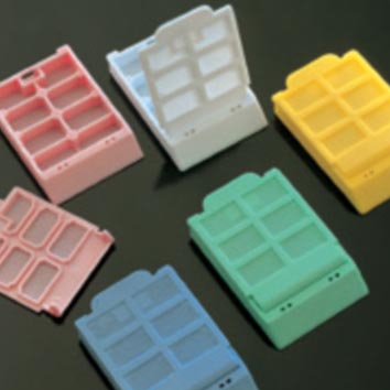 Cassettes poliacetal para biopsia, 6 celdas, con tapa, color rosa, caja 4x250ud.
