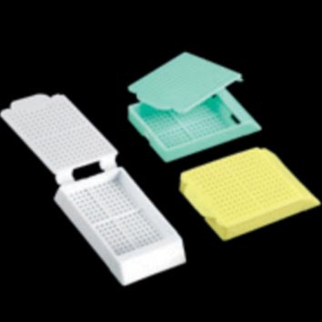 Cassettes poliacetal para biopsia, Histosette I, con tapa, color amarillo, caja 3x500ud.