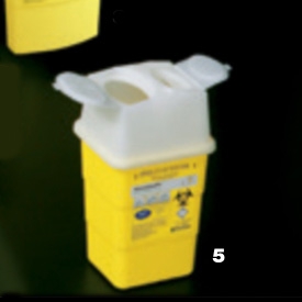 Contenedor (5) para jeringas y agujas, 1 litro 107x90x190mm. Caja 100 ud.