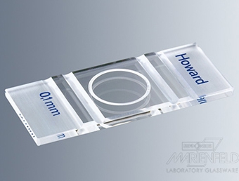 Cámara Howard con 2 líneas distanciadas 1402um. Para zumos de frutas. Sin cubreobjetos. Con 2 líneas distanciadas de 1402 μm. Anillo aprox.18 mm Ø interior y 22 mm Ø exterior. Referencia: LA110940 Marca: Superior « Volver