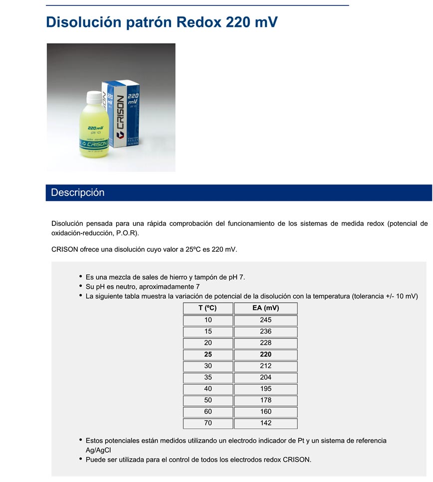 CRISON ofrece una disolución cuyo valor a 25ºC es 220 mV.