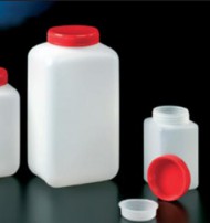 Frasco rectangular polietileno 500ml. con tapón y obturador, caja 165ud.