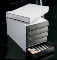 Archivador plático para cassettes Archivador modular para 1500 cassettes en total, con 6 cajones apilables Fabricado en poliestireno de alto impacto. Compuesto por 6 cajones apilables (divididos en 7 canale...