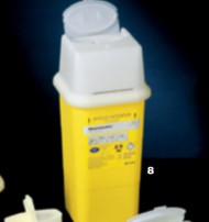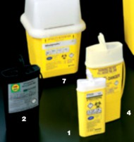 Contenedor (5) para jeringas y agujas, 1 litro 107x90x190mm. Caja 100 ud.