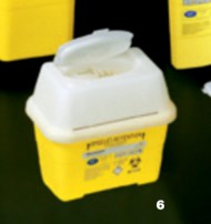 Contenedor (6) para jeringas y agujas, 2 litros 195x120x170mm. Caja 50 ud.